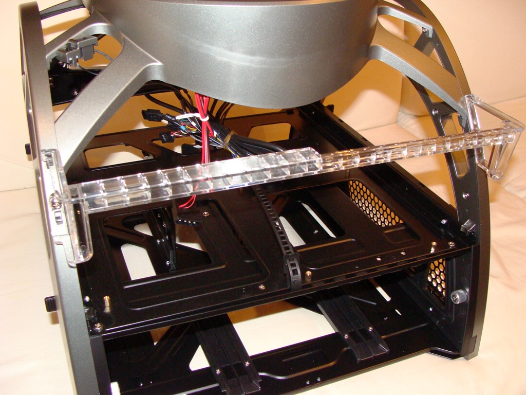 後ろの部分全体。透明のバーはPCI関連のボードなどを固定するバー。傷つきそう。
