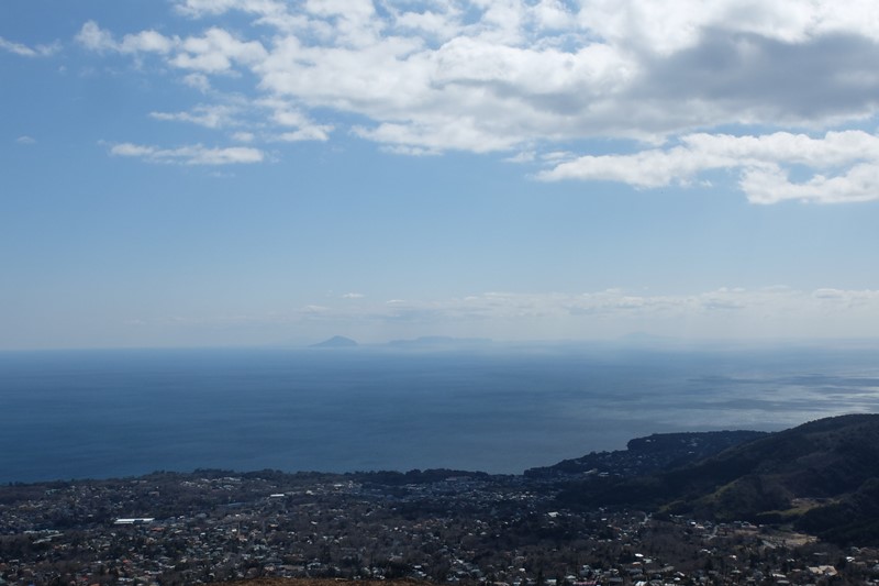 遠く伊豆七島の利島や新島、式根島、神津島、そして三宅島が見える