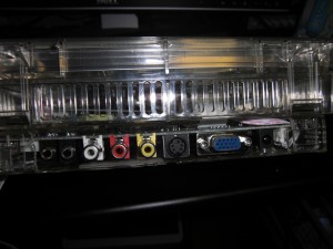 ディスプレイに気を取られてしまいがちですが、マザーボードにはチップセットはIntel G31 Express/ICH7が搭載されています。対応しているCPUはCore 2 Duo、Pentium Dual-Core、Celeron 400シリーズといったLGA775タイプです。最大対応TDPは65WなのでQuadは無理です。スロットがPCI Express x1×1が使えると。メモリはDIMMスロットが二つあり(最大4GB)DDR2 800までの対応のようです。バックパネルにはアナログRGBもついていますので、やろうと思えばデュアルディスプレイにできる。