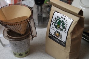 そのチョコレートのおともは、この前ハワイ島に行ったときに、ISLAND NATURALSで購入した100%コナコーヒー。この店は名前のように自然食品というか、オーガニックなものを扱ってます。そして色々な種類のコナコーヒーが置いてあるので、その中で適当に見繕って買ってきました。豆のママなので、その場でグラインドしました。コーヒーは量り売りなので、色々な種類のを少しづつ購入することも可能です。ちなみにコカコーラなんぞ売っておりませんw