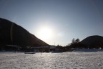 薪ストーブのそばでごろ寝しつつ、翌朝は4時半起床…。2時間くらいしか寝てないじゃん…。朝7時までに赤城大沼に行かなければならないという使命を帯びて出発。しかしほんとーに寒い。途中夜明けを迎え、一度赤城ICまで降りてから赤城山に向かうのだった。冬期は前橋赤城道路しかやってないようです。他は全部閉鎖されているという。冬期閉鎖なんてのは東京や神奈川じゃ見たことありませんから(奥多摩とか箱根ならあるのかな)、ナビゲーションの通りに進んじゃうひどい目にあうようです。今度から気をつけようっと。