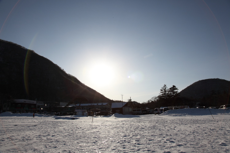 さて、その後赤城温泉に行こうとしたのですが、道がアイスバーン…。結局温泉にも入らず、スタックしたキャンピングカーを救い出すのに必死になって働きました。塩化カルシウムを地元の方にいただき、なんとか脱出。スタッドレスタイヤの優秀さもアイスバーンでは鳴りを潜めてしまうわけですな。ここらへんから一筋縄で行かない雰囲気が立ちこめ始めてきた…。