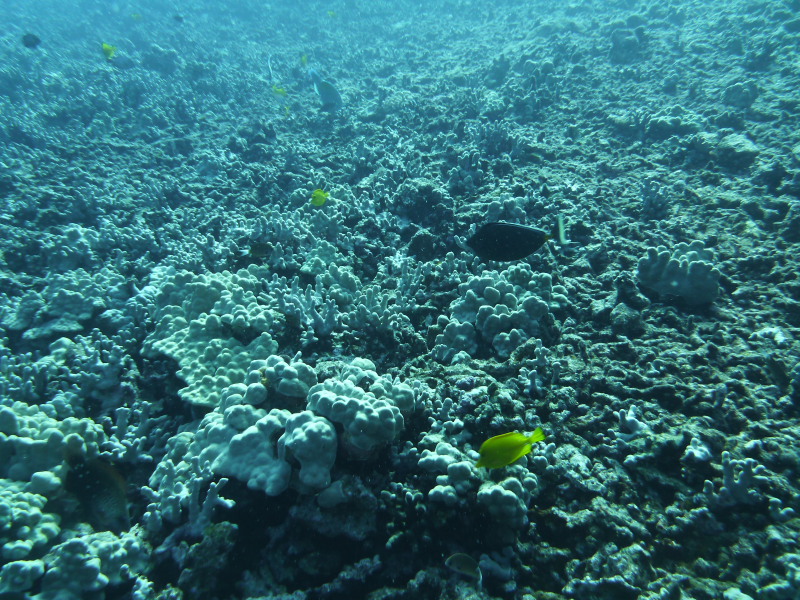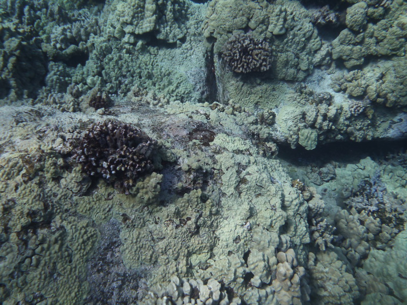 ハワイ・オアフ島のマカハビーチ側LCUというポイントでのカメ。透明度最悪ですw