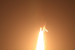 無事打ち上げが終了しました。もうすでに14時間ほど前になりますが、打ち上がった瞬間は本当にすごい光景でした。メディアサイトにいて見ていたのですが、音と振動が届く前に光の玉が地上に現れ、そして静かにすーっと上がっていく火の玉。その後音と振動が届き、みるみるうちに天空高く舞い上がり、STS-131 Discoveryは星になりました。