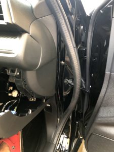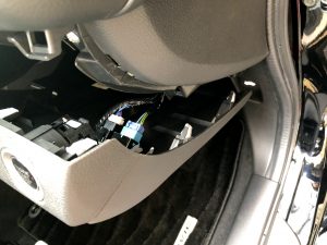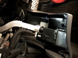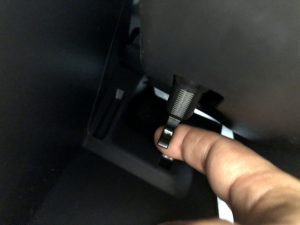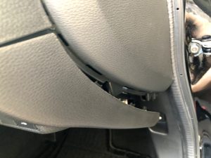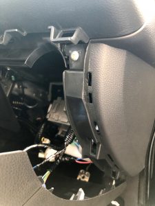 グローブボックスをダンプさせる伸び縮みするステーから先に嵌める。思いっきり下に延ばしてから嵌めよう - ナビ類のハーネスのハンドリング