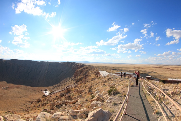 実は本来ならこの日は化石の森国立公園へ行けたらいいな、と思っていた。しかし、すでにキングマンで悠長に朝ご飯していたり、渋滞や途中の休憩などで時間を浪費してしまい、残念ながら化石の森国立公園はカットすることにした。またいつか絶対行ってやる…という熱い想いだけ残してバリンジャーにあるクレーターに行くことにする。